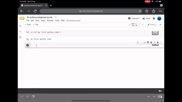 Python 3 coding on Ipad pro | google colab