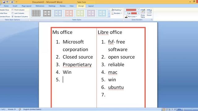 Libre office & ms office differences.