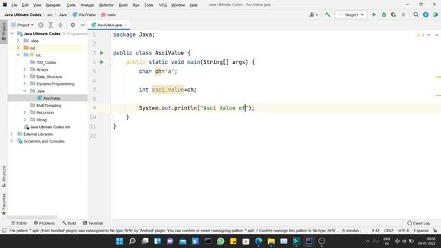 how to get ascii value of alphabets in java | ascii code in java | ascii value of string in java