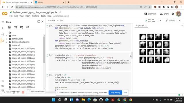 Build a GAN model to create deep fakes of the fashion mnist dataset then turn the output into a gif