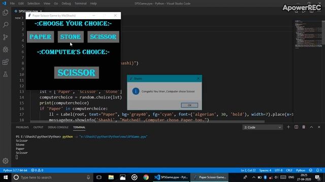 Stone, Paper, Scissor game in python. Using Tkinter. -DIY In PC