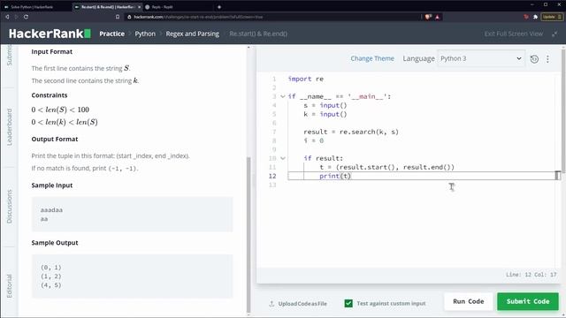 Python Ejercicio: 1118 HackerRank Todas Coincidencias de una Subcadena en un Texto con finditer()