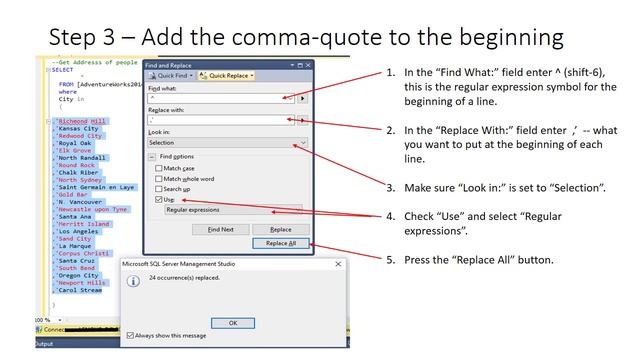 Using Regular Expressions to manage lists in SSMS