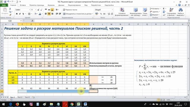 Решение задачи о раскрое материалов Поиском решений Excel, часть 2
