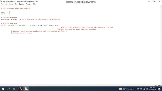 Python Programming | Add Two Number program in python | Python