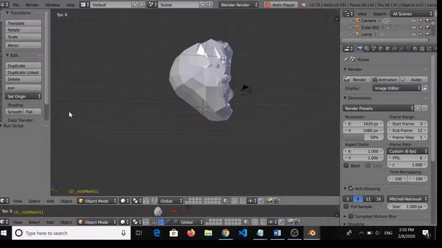 COMP590.162: Intro to 3D Modeling Blender- Running Python Script (Nick's Animation) Successfully