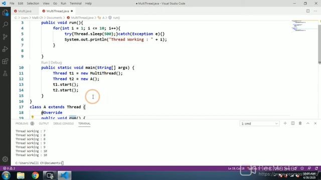 Multi-threading in Java(In Telugu) with an example program.