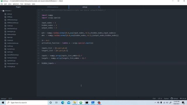 Create artificial neural network in python