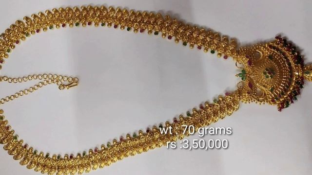 gold long lakshmi haram designs with weight and price || gold kasulaperu designs/Temple jewerly
