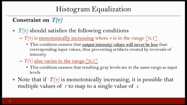 Lecture 21: Histogram Processing - Part 1 (Histogram Equalization-Continuous Case)