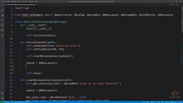 Python Curso V2: 553 2/2 Distribución (Layout) Horizontal de Componentes con QHBoxLayout