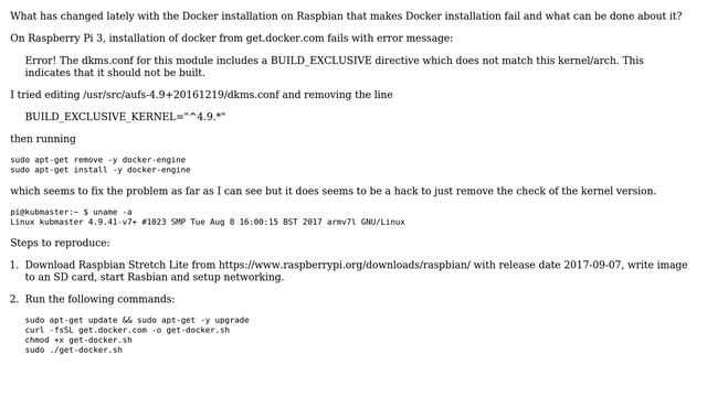Docker installation on Raspberry Pi 3 fail not matching kernel version in aufs