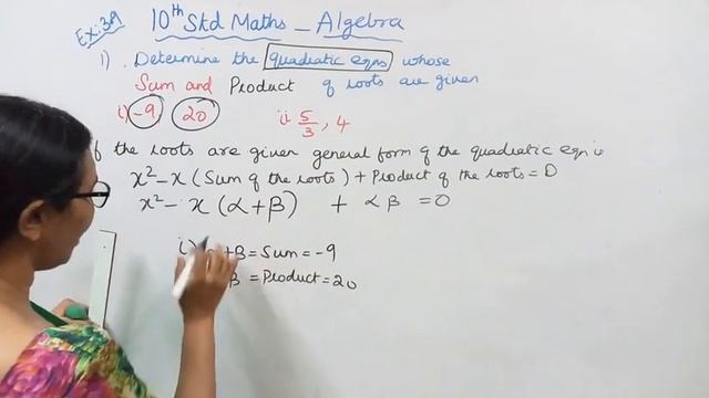 T.N.Samacheer 10th Std Maths | Exercise:3.9 Sum - 1 (i) | Chapter - 3 | Algebra.