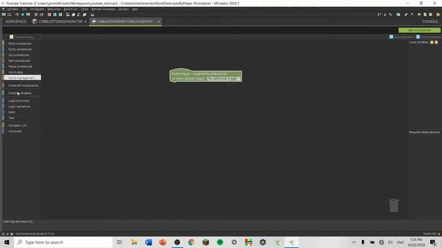 Mcreator how to make a respawning block (Cobblestone Generator)
