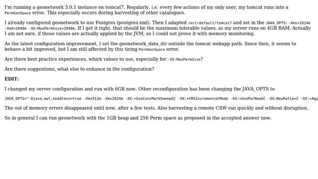 GIS: PermGenSpace error in Tomcat with geonetwork 3.0