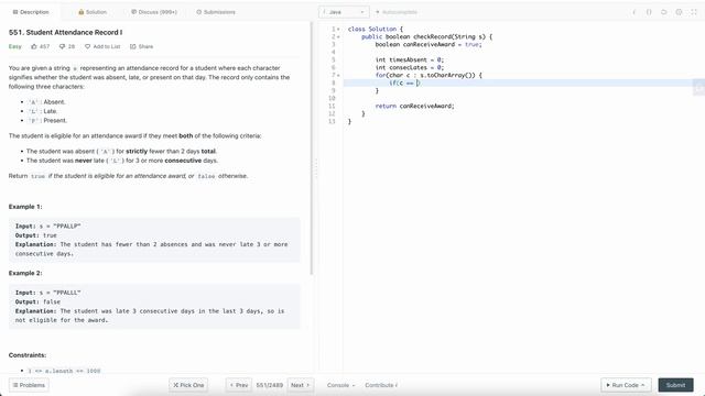 Leetcode 551 Student Attendance Record I (Java)