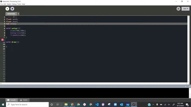 Asteroids Part 1 (Processing, Java)