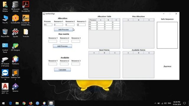 Project #1: GUI Implementation of Banker's Algorithm Using Java Swings. (With Source Code)