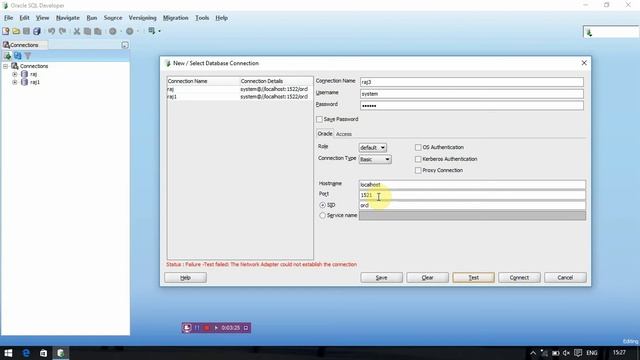 How to remove network adapter problem while creating connection in oracle 11g or 12c