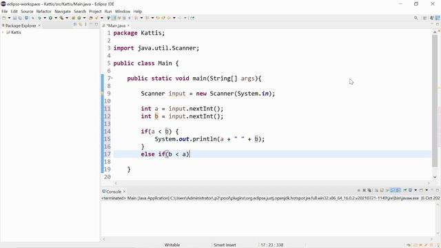 Kattis - Sort Two Numbers Solution (Java)