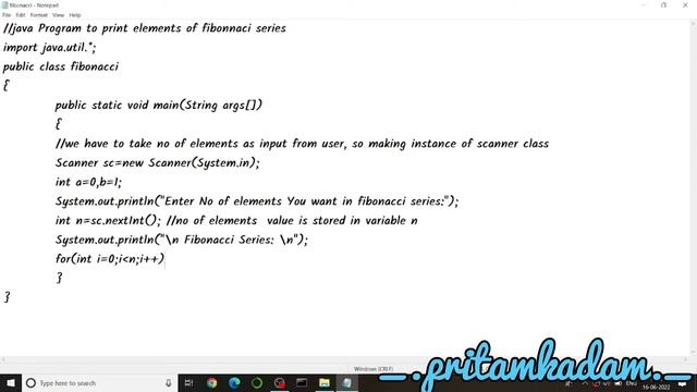JAVA Program To Print Fibonacci series