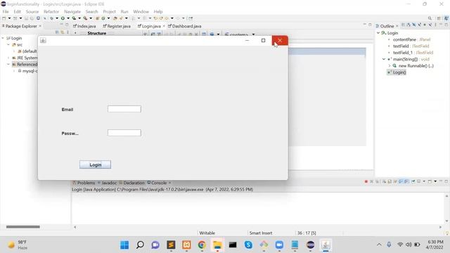 Java Swing|Login Functionality|JFrame