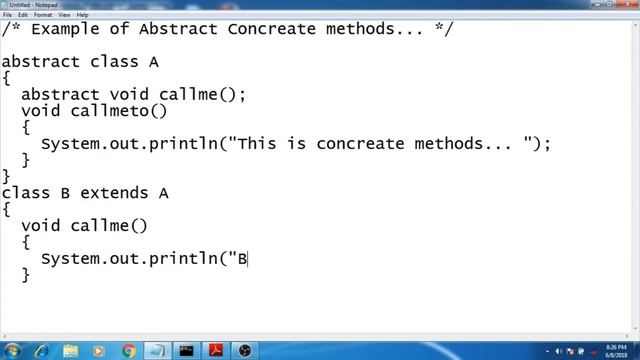 Abstract Concreate method Example In Java Program