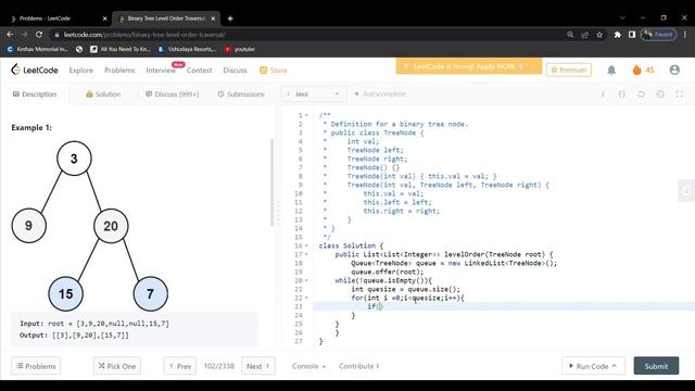 Binary Tree Level Order Traversal || Leetcode -102 || Java || 13-07-2022 || #LDC5