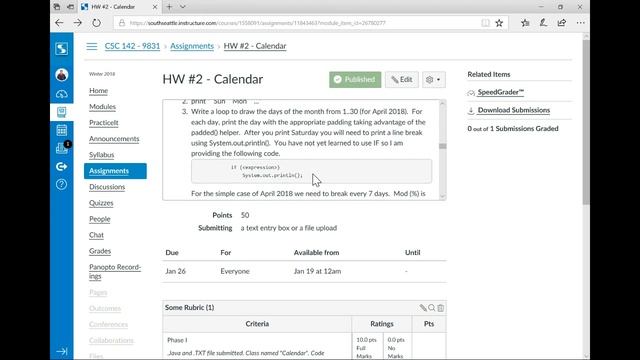 CSC 142 Calendars Java Homework Walkthrough Phase 1