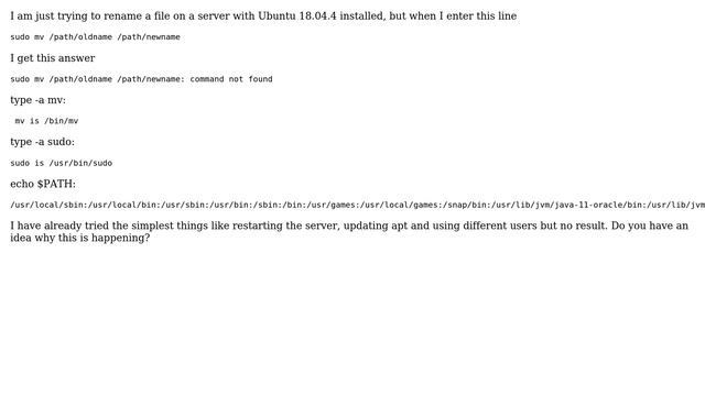 Unix & Linux: sudo mv /path/oldname /path/newname: command not found
