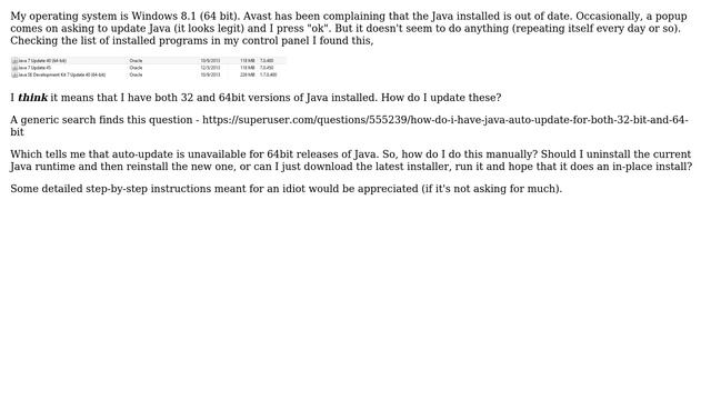 How to update Java 32 & 64 bit on windows8.1?