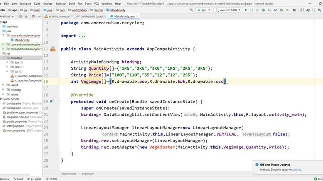 Recycler View in Android Data from Java
