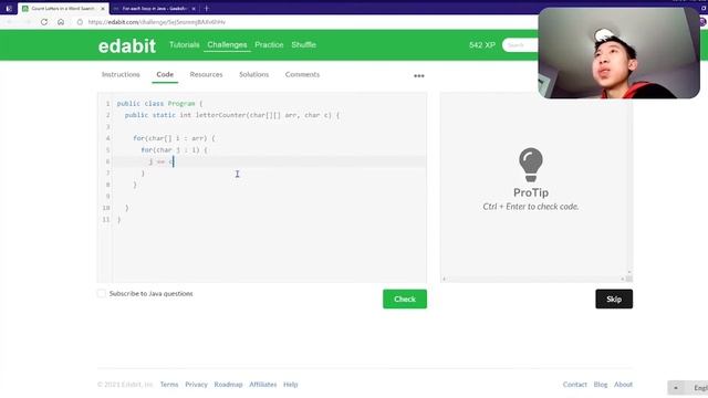 Edabit Java Count Letters in a Word Search, Medium Difficulty
