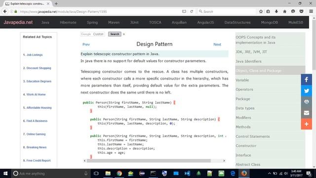 Explain telescopic constructor pattern in Java. | javapedia.net