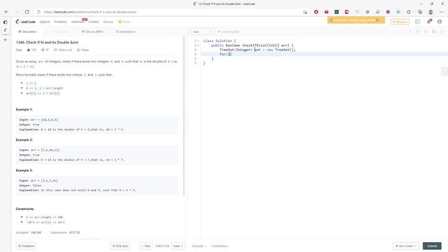 LeetCode 1346 | Check If N and Its Double Exist | TreeSet | Java