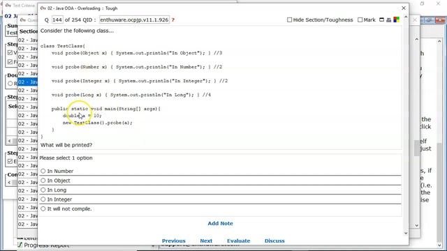 A double argument will be boxed to Double, Number and Object in that order. (ocpjp.v11.1.926)