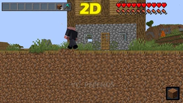 minecraft overworld in 5D vs 3D vs 2D