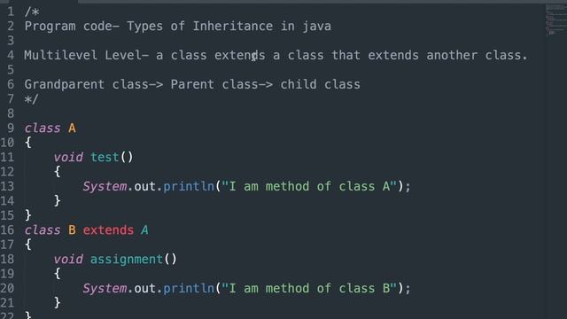 Program code for Types of Inheritance