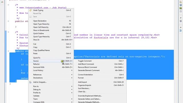 HOW TO ALIGN JAVA CODE IN ECLIPSE STEPS