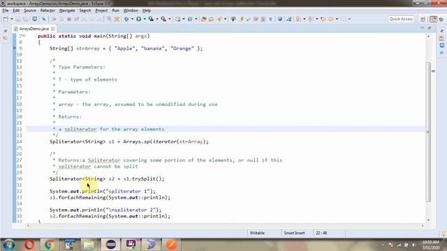 How to use spliterator(T[] array) method of Java.util.Arrays Class?
