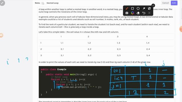 Nested loops in Java | Nested for and while loop in java
