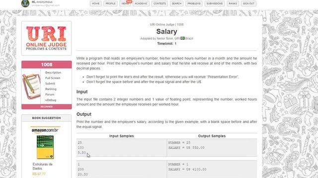 URI Online Judge Solutions in Java - Problem 1008
