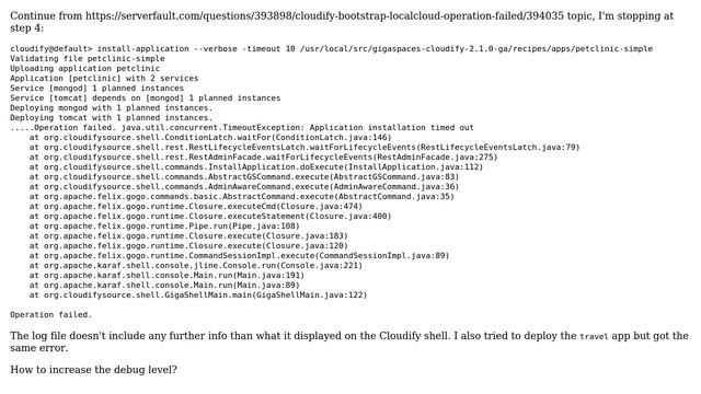 DevOps & SysAdmins: Cloudify - install-application: Application installation timed out?