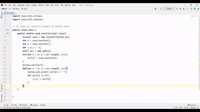 INDEX OF SPECIFIC NUMBER IN SORTED ARRAY JAVA PROGRAMMING NO SOUND COPY CODE