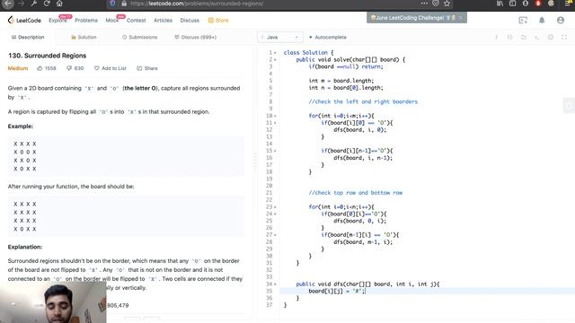 Leetcode 130 Surrounded Regions Java Solution