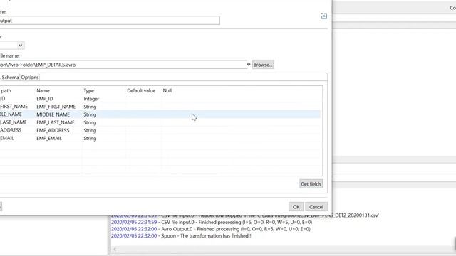 Avro Output Component in Pentaho