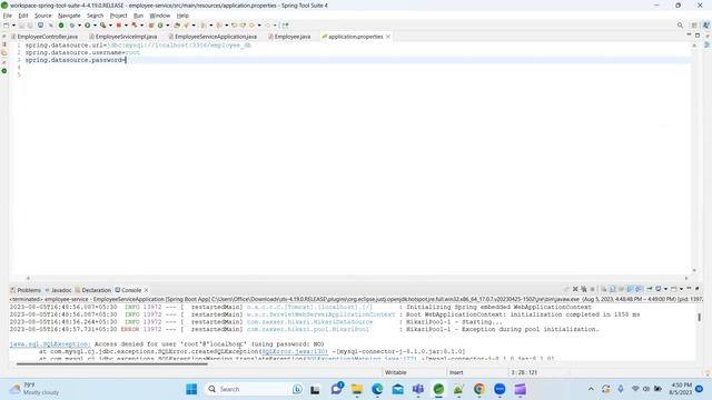 Exception During Pool Initialization in SPRING BOOT