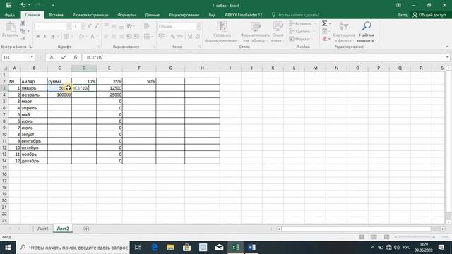 Excel программасы менен процент эсептоо