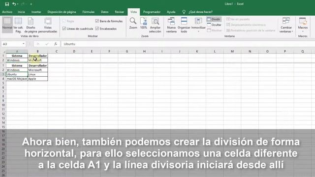 Cómo dividir pantalla en Excel 2019 o Excel 2016