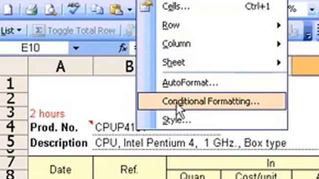 Microsoft Office Excel 2003 Apply a style